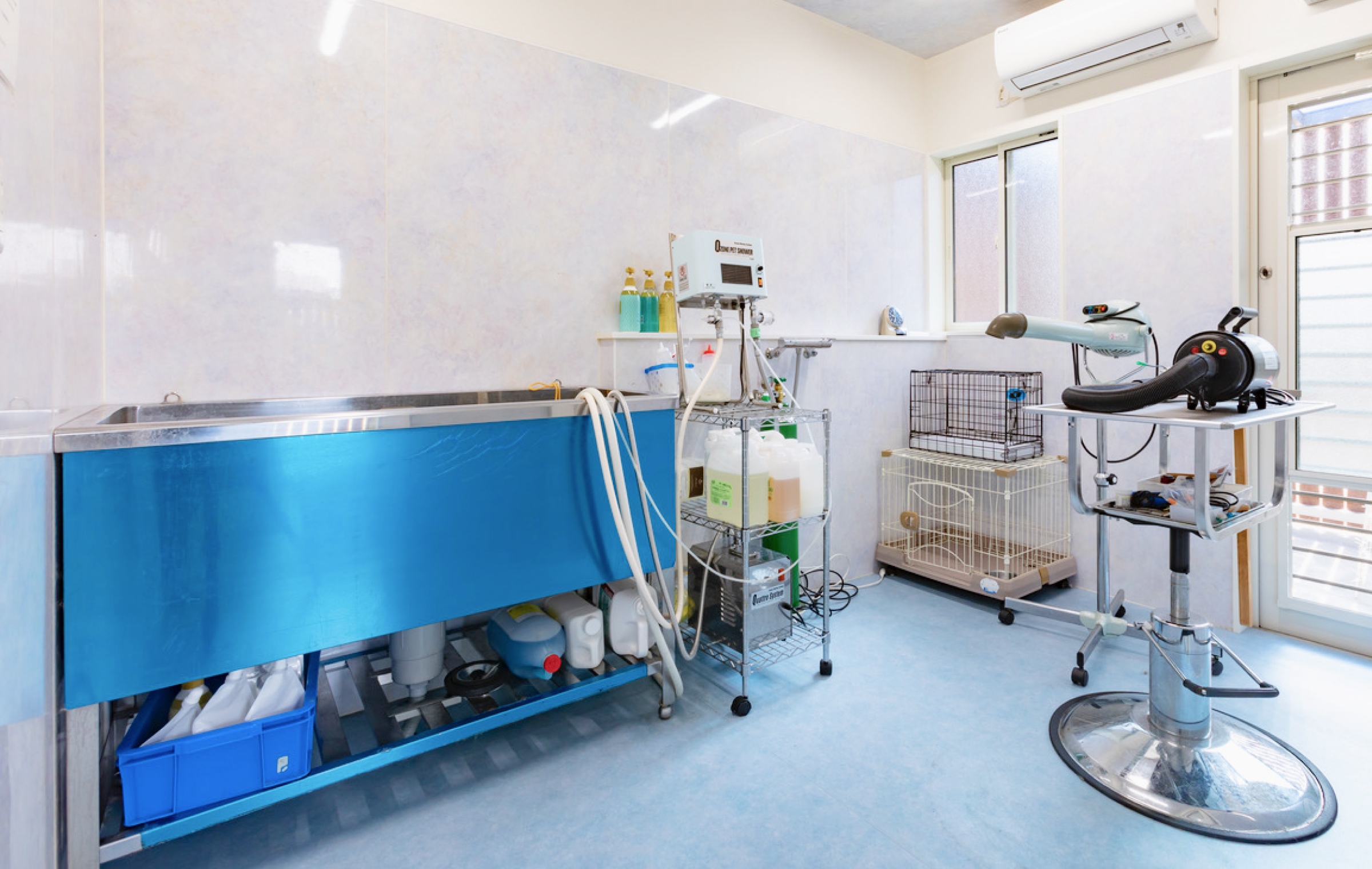 アトピー性皮膚炎・細菌性皮膚炎・マラセチア性皮膚炎・脂漏症などの難治性、憎悪期の補助治療として薬浴シャンプーとオゾンシャワー(余分な皮脂の分解・洗浄、ウイルスの殺菌)とオゾン温浴を組み合わせて、皮膚のかゆみ、炎症、ふけ、ごわつきなどを改善します。